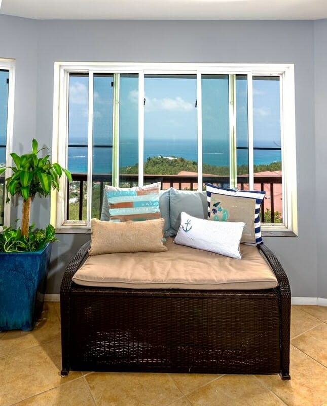 This unique villa sits hillside in St. Thomas, USVI. With stunning ocean and island views, this 2 bedroom, 2 bathroom villa is a private paradise! Boasting 2 king-sized bedrooms and plenty of living area, Panoramic Paradise comfortably accommodates up to 6 guests.
